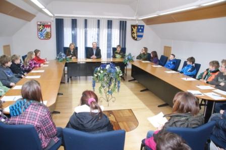 Der Bürgermeister schaute sich die Pläne mit den Kindern interessiert an und versprach auch, diese Skizzen der Trägergruppe vorzulegen, wenn es um die Planung des Dorfplatzes geht. Schon einmal haben die Kinder bei der Gestaltung des Eingangsbereiches der Schule auch Vorschläge gemacht. Diese hat man nicht verworfen, sondern in die Planung einfließen lassen. 26 Sitzungspunkte in Form von Fragen hatten die Kinder vorbereitet. Wie Rektorin Elke Schosser erklärte, sei dies der Abschluss der Unterrichtssequenz "Gemeinde". Wo kommt das Geld her für unsere Schule? Über was wurde am längsten diskutiert im Gemeinderat? Ist es Ihnen auch mal langweilig als Bürgermeister ("Nie") oder was essen sie am liebsten ("Gemischten Braten"). Auch das waren Themen, die die Kinder interessierten. Zu guter Letzt wurde dann die Frage gestellt, ob es schon Pläne für die Dorferneuerung gibt.