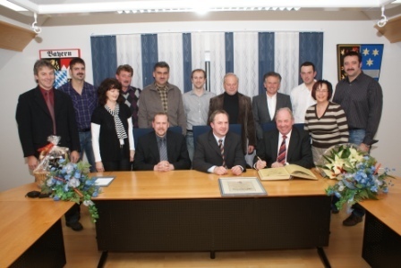 Gerhard Scharl ernennt Vorgänger Hans Götz zum Altbürgermeister. Einstimmig ernannte der Gemeinderat Hans Götz zum Altbürgermeister. Gerhard Scharl überreichte seinem Vorgänger an der Spitze der Gemeinde in der Festsitzung am 09.12.2008 die Ernennungsurkunde, bevor sich Bgm. a. D. Hans Götz ins Goldene Buch eintrug. Die Aufwärtsentwicklung der Gemeinde vor den Toren Weidens ist untrennbar mit Hans Götz verbunden. In 14 Jahren als Bürgermeister machte er Bechtsrieth zu einer lebenswerten Gemeinde. Der Gemeinderat ernannte Götz jetzt zum Altbürgermeister. "Einer der es verdient hat", sagte der Nachfolger als Gemeindeoberhaupt, Gerhard Scharl, in der Festsitzung. Götz habe sich in 32 Lebensjahren in der Kommunalpolitik für die Bürger engagiert. Nach der Trennung von Irchenrieth wurde er 1994 zum Bürgermeister von Bechtsrieth gewählt. Ab hier war Pionierarbeit gefordert, "denn die Gemeinde musste praktisch wieder von null anfangen". Es gab weder ein Rathaus noch einen eigenen Bauhof mit Winterdienst. Fast ausschließlich in Eigenleistung mit Unterstützung der Bürger wurde das ehemalige Lehrerwohnhaus zum Bauhof und Rathaus mit Sitzungssaal umgebaut. Scharl: "Wenn du dem Bürgermeister die Hand gibst, must du arbeiten, redeten damals die Bürger hinter vorgehaltener Hand". Der Bau der Spielplätze, der Pfarrheimneubau mit Jugendheim und der Bau eines Kindergartens waren weitere Meilensteine. Der Ausbau der Grundschule, die Sicherung der Wasserversorgung und die Erschließung von Baugebieten kamen dazu. "Götz handelte stets mit Weitblick und wie die heutige finanzielle Situation zeigt, stets effizient bei äußerster Sparsamkeit". Scharl überreichte vor dem Eintrag ins Goldene Buch die Ernennungsurkunde. Götz zeigte sich tief gerührt über die Ehre. Er habe immer das Wohl der Bürger vor Augen gehabt und als deren Sachwalter die Gemeinde geführt. "Erfolgserlebnisse waren immer wieder die Basis, um Neues anzugehen." Dabei habe er die uneingeschränkte Unterstützung der Bediensteten der Verwaltungsgemeinschaft Schirmitz gehabt. Götz erinnerte auch an seinen verstorbenen Stellvertreter Josef Bausch, der ihm eine große Hilfe gewesen sei.